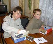 - Снегурочка подарила Саше Куликову и Сергею Шестернину (сиротская группа школы-интерната) по CD-плееру