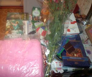 • 5 апреля 2012 г. подарки на день рождения: цветы, конфеты, покрывало, духовная литература от фонда;