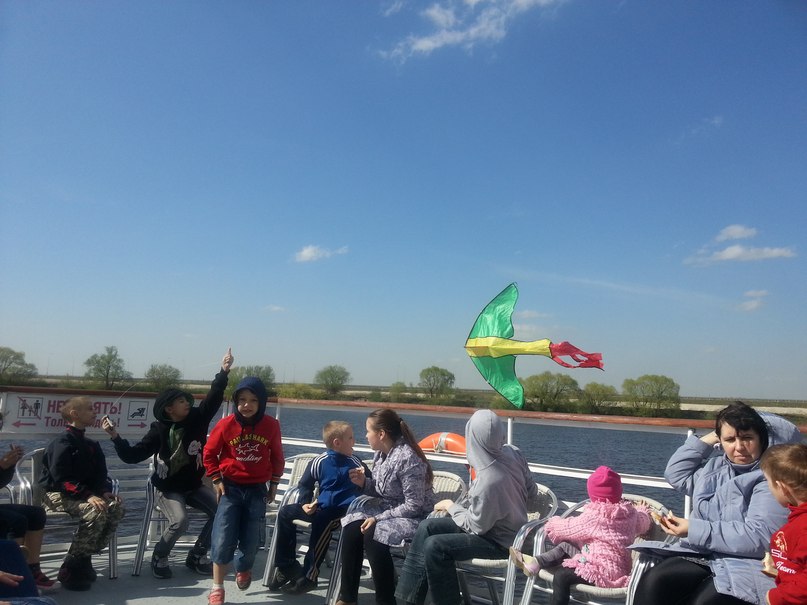 воздушного змея. Змей весело летал над теплоходом все время пути. С