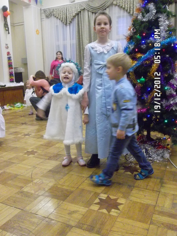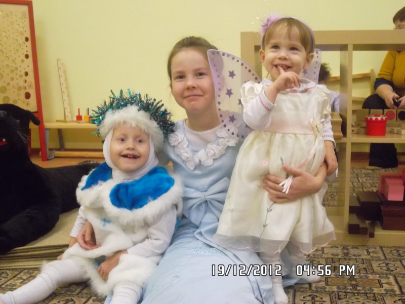Развивающий детский центр «Мамонтенок» любезно пригласил маму Наташу и деток, Машеньку, Викусю и Ирочку принять участие в новогоднем представлении. Перед тем, как окунуться в водоворот новогоднего веселья, мама Наташа с дочками приехала чуть пораньше и детки с удовольствием позанимались в развивающей комнате, где было очень много интересных развивающих игрушек для разных возрастов. Порезвившись вдоволь, мы отправились в актовый зал, где стояла красивая ёлка. Наши детки участвовали в интересных конкурсах, пели, танцевали, как положено на новогодней ёлке. Ирочка прочла с выражением дедушке Морозу очень красивое стихотворение, Машенька вначале испугалась дедушку, но потом с удовольствием за ним наблюдала и принимала участие во всеобщем веселии. Наши детки пришли на ёлку подготовленные, Машенька и Викуся в костюмах, а Ирочка в нарядном платье. Викусе так понравилось водить хоровод у ёлочки, что она умудрялась оббегать всех идущих вокруг ёлки, с веселыми возгласами по два раза. В конце мероприятия детки получили сладкие подарки и довольные отправились по московским пробкам домой. В Дом Милосердия наши подопечные вернулись очень уставшими, но довольными.