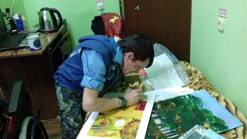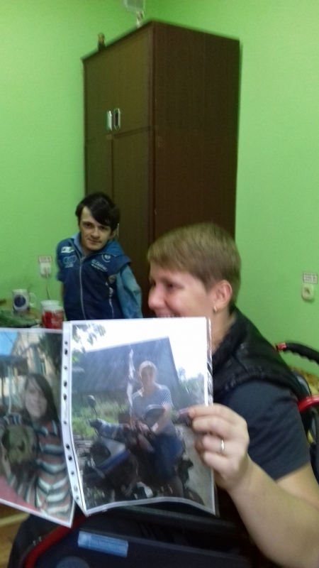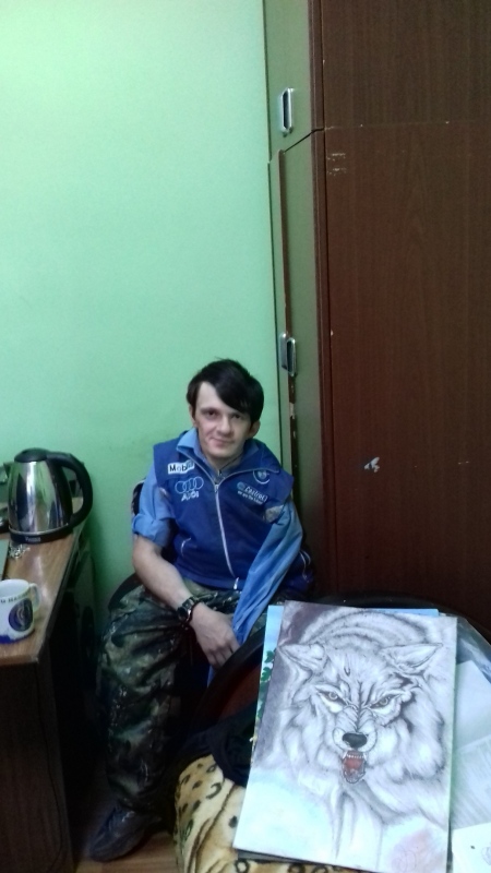 А в самом интернате девочек встречали их друзья Дима и Кирилл. Ребята колясочники, но очень активные. Дима - художник с одной рукой. Он передал через Стефана в дар фонду три своих картины. Кирилл участвует в танцевальных фестивалях. Даже за колючей проволокой они умудряются радоваться жизни, улыбаться и не роптать. У мальчиков тоже никого нет и девчонки по секрету сказали, что они тоже давно мечтают попасть в Дом Милосердия, но стесняются об этом просить. Когда к нам начали приезжать на каникулы или лечение колясочники, мы впервые задумались о том, как плохо, что Дом Милосердия у нас на 3 этаже. Конечно, сотрудники фонда помогают спускаться - подниматься, да и ребята сами прыгают на руках, но все равно это тяжело. Проблема.