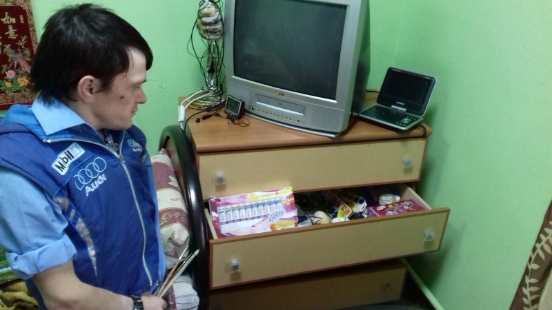 Перед тем, как уехать, девчонки скромно попросили средства гигиены для других девочек из интерната - Наташи и Лены. Они тоже всю жизнь живут в интернате. Оксана Михайловна Гарнаева начала их опекать еще с 1997 года.