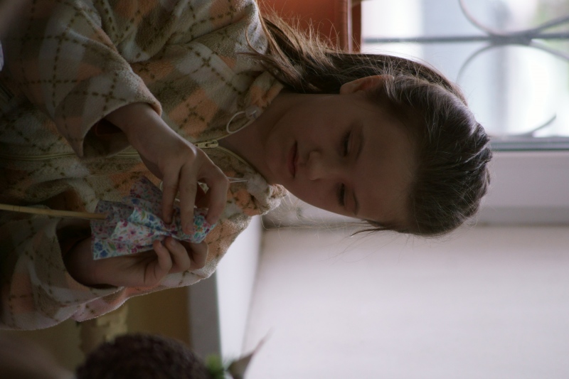 В Доме Милосердия сегодня было шумно и весело. Дети ждали приезда съемочной группы. Здесь собрались и те, кто нашёл приют сейчас и те, кто когда-то побывал в Доме Милосердия, как подопечный. Но со съемочной группой пришли гости - другие дети, которые делали своими руками поделки для благотворительной ярмарки в помощь Дому Милосердия. Впервые они познакомились с теми, кому, по сути, оказывают помощь. Мастер класс для детей, которые решили сделать поделки, провели Вера Павловна (куколки) и Оксана Михайловна (мышиный домик). После мастер класса дети отнесли поделки на ярмарку и пошли в Дом Милосердия.