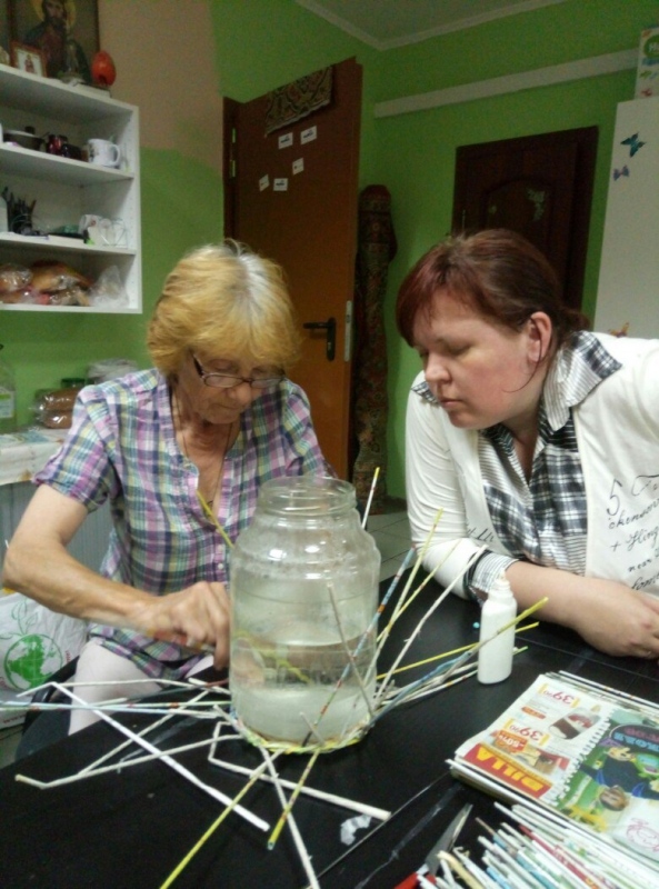 В Доме Милосердия фонда "Русская Берёза" находится временно Людмила Васильевна. Она попала в беду и пока ей негде жить. Казалось бы, от перенесённых бед и проблем, пожилой человек должен был впасть в отчаяние, настолько всё сложно. Но Людмила Васильевна не только оптимистка, но ещё и взялась плести корзинки для благотворительной ярмарки фонда. Мамочки из Дома Милосердия сразу заинтересовались и попросили обучить их тому, как делать такую красоту.
