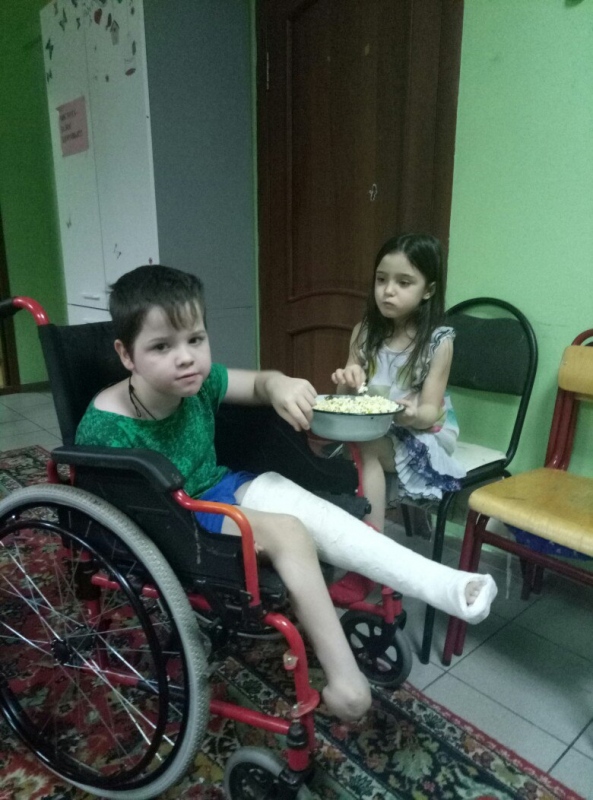 Конечно, Сёмочка меняется в Доме Милосердия при фонде "Русская Берёза". Здесь дети его так хорошо приняли и каждый о нём заботится, как может. Вот Дианка с Сережкой сделали попкорн и пригласили Сёмочку на мини тусовку. Вместе веселились, ели попкорн и, что самое главное понимали друг друга. Может, для нового человека Сёмочка лопочет и неразборчиво, а вот дети каким-то образом разговаривают с ним. Сёма неимоверно счастлив, потому что у него появилось много друзей. Это так здорово! Воспитываясь в доме ребенка для умственно отсталых, такого жизненного развития не получишь. Поэтому Сёме очень нужны родители!!! Заботливые и любящие! Сёма очень благодарный мальчик, он всех целует, радуется каждому мгновению, проведённому с ним в компании. Люди! Наш Сёмочка очень хороший! Мы все безумно переживаем, что после операций его придется отправить обратно в дом ребенка. Давайте что-то думать. Искать ему родителей. Кто и чем может помочь? У нас есть потенциальные родители, но жилищные условия не позволяют. Может, найдутся такие люди, которые ради спасения человеческой жизни помогут решить этот вопрос. Сёмочку можно взять только на усыновление. Его нельзя и в 18 лет отдавать обратно в интернат. Ему нужно дать возможность реализовать себя, ведь видно, что он очень сообразительный, если заниматься огромные результаты будут!!!