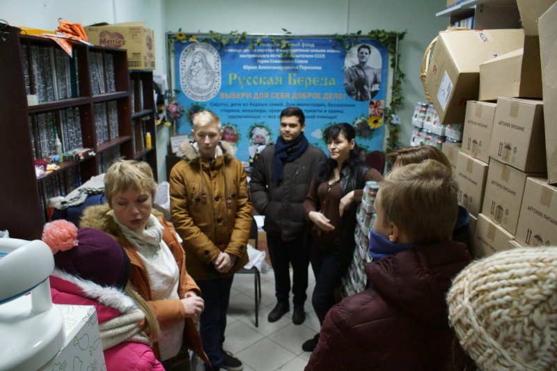 Когда ученики приехали в фонд, то в начале экскурсии их провели по отделам помощи. Специалисты отделов рассказали о своих подопечных - семьях с детьми, пенсионерах, инвалидах, организациях, православных храмах и даже о заключенных со всей России. Как и Дом Милосердия - каждый отдел помощи это отдельный проект, выполняющий огромную фуннкцию в деле спасения своих подопечных.