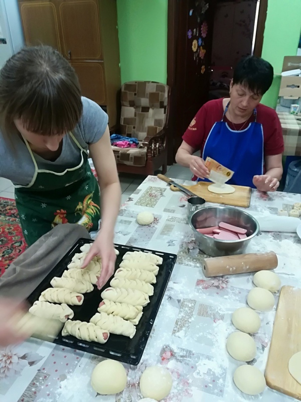 Когда нужно в день накормить от 20 - 30 человек, сосиски - роскошь. Ну разве одной сосиской наешься? Булочки, пирожки няни Дома Милосердия фонда "Русская Берёза" стараются печь сами. И тоже на это нужно время, так как забот по Дому Милосердия у няни очень много. Помогают мамы и няни больных деток, все участвуют обычно в поварских делах. Даже детишки подключаются. Вот, например, добрый человек Анна - постоянный благотворитель нашего фонда, принесла в Дом Милосердия сосиски и булочки. Булочки тут же уничтожили, а вот из сосисок, разделив каждую напополам, сделали сосиски в тесте. и много и вкусно получилось! Спасибо огромное Анне за то, что она нам всегда помогает! И дай Бог здравия и благоденствия каждому доброму человеку, кто поддерживает наш Дом Милосердия в плане еды!!! Да и не только. Помощь благодетелей неимоверно нужна сейчас, когда к нам приезжает так много деток. Когда решаются их судьбы. Низкий поклон каждому человеку, благодетелю, волонтеру, нашему другу! Сейчас постоянно огромная нужда в оплате аренды помещения Дома Милосердия (долг за 2 месяца), ЖКХ, в содержании подопечных. Волонтеры и благодетелели, которые хотят посетить Дом Милосердия, могут звонить няне 89167800906