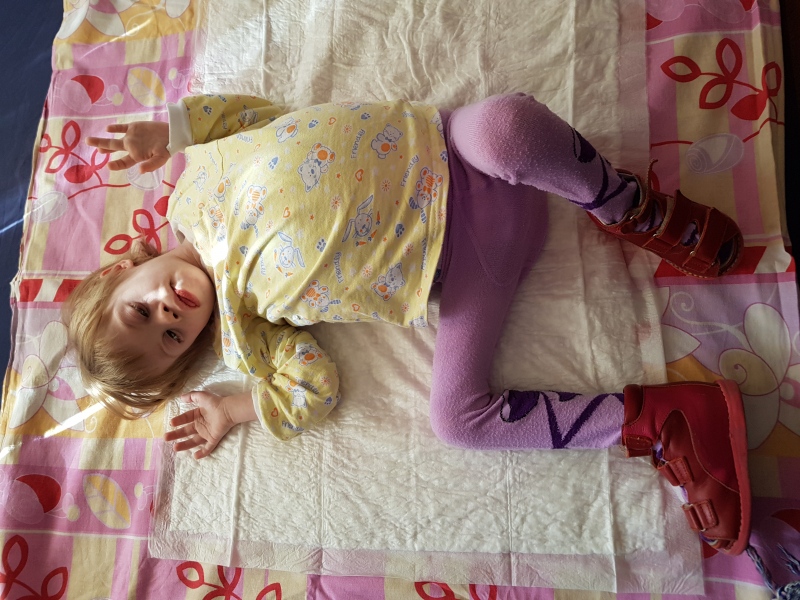 Мы думали, Оленька только лежит, как маленький лягушонок, но она встала на свои тонюсенькие ножки и пошла... Выпятив своё кругленькое пузико, как шарик на верёвочках. Недавно один человек сказал: "Зачем Бог допускает таких детей, чтоб они мучались?". Наверное, затем, чтобы разбавить наш жестокий мир милосердием, добром. Чтобы мы совсем не погрязли в "бездне греховней", а имели возможность, искупить свои грехи, заботясь о таких страдальцах, милых, незлобливых, доверчивых, об этих ангелах....