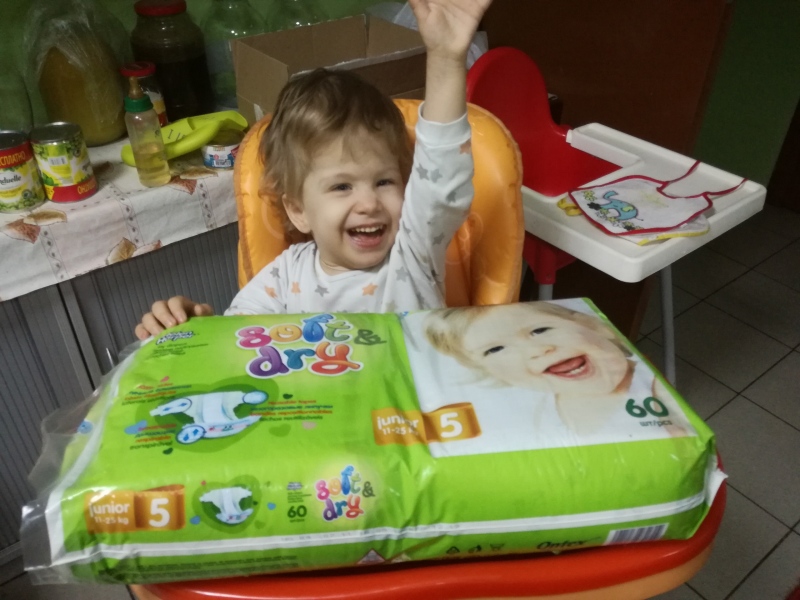 Сердечно благодарим Раису, которая передала в Дом Милосердия фонда "Русская Берёза" экстра важную и необходимую вещь - памперсы!!! Для нас это колоссальная помощь. Потому как детишки инвалиды постоянно писаются, какаются, как бы просто это не звучало, но без памперсов наши няни просто измучают и детей и себя. Огромное спасибо за памперсы для Ксюши и Алёны! Раечка, счастья, удачи Вам во всём! Детей к нам приезжает много и все они, без исключения, болящие. Слава Богу, что есть люди, которые жертвуют на помощь детям сиротам, детяи инвалидам и детям, оставшимся без попечения родителей. Спасибо! Нам очень нужны памперсы разных размеров. Но самая огромная нужда сейчас в сборе средств на содержание детишек и в оплате аренды помещения. Помогите детишкам, пожалуйста! Все дети после тяжелых операций или лечения, приехали из разных интернатов России и им нужны самые, что ни на есть, комфортные условия!