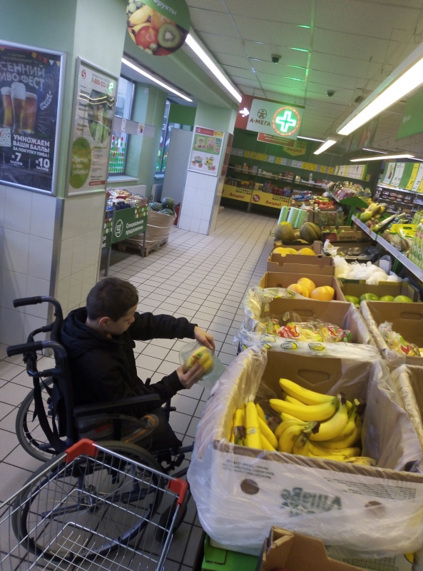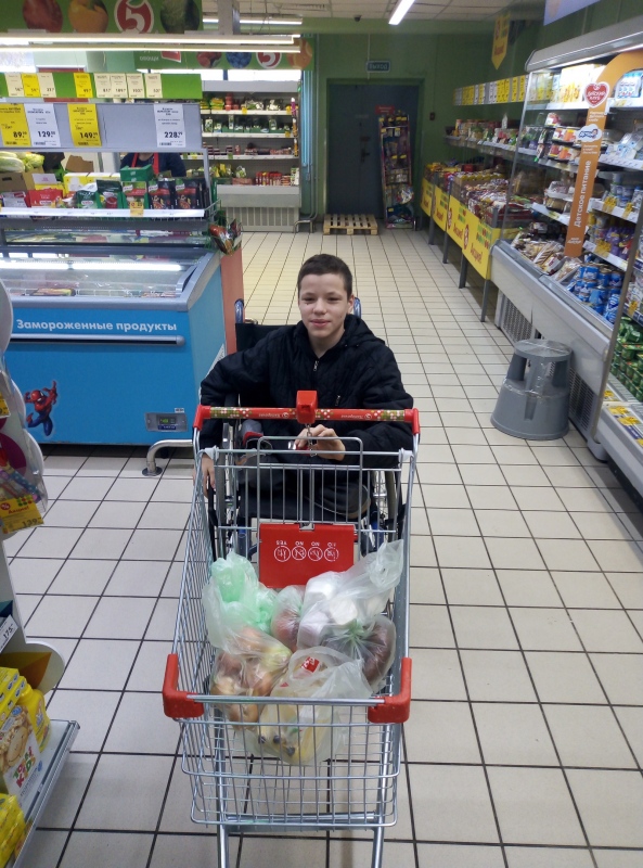 Какое трудное дело, скажете вы, сходить в магазин. А вот очень трудное, когда ты вообще с этим не сталкивался. Живешь в дет доме и света белого не видишь. Так вот, пока Сережка в Доме Милосердия (фонд "Русская Берёза"), мы не только его водим в школу, к логопеду, к дефектологу, но и учим элементарно важным вещам. Например, как сходить в магазин. 13-летний ребенок обычно может спокойно сбегать купить нужные продукты, помочь маме. Вот и Сережа ходит с няней. Смотрит на цены, выбирает по списку, что будут кушать в Доме Милосердия. Для него еще важно, чтоб была доступная среда. То есть на инвалидной коляске можно заехать и спуститься, свободно передвигаться по магазину, понимать, как и что можно достать с полки. Сейчас архи важно ребенка всему этому научить. Потому что в большой жизни (а мы надеемся, что Сережка не попадет в пожизненный), одному человеку в этом мире сориентироваться сложно, можно пропасть. Огромное спасибо всем, кто помогает нашему Дому Милосердия! Вы помогаете нам делать то, что должны были делать родители, которых у Сережки, увы, нет.. Помощь нам очень нужна!!!!