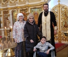 Когда мы привезли крестить Сашеньку, было такое чувство, как будто над нами парили ангелы. Настолько этот ребёнок чистый и светлый. Он очень ждал крестин, давно, ещё в дет доме. Но "батюшка то болел, то в Читу уехал". Так, до 14-ти лет, прекрасный отрок и не был крещён. У нас в городе есть храм Покрова Пресвятой Богородицы, мы там почти всех детей, которые приезжают в Дом Милосердия фонда "Русская Берёза", крестим. Батюшка настоятель отец Александр всегда найдет время и, если не сам крестит, то пришлет другого священника. Дети у нас все с тяжелыми заболеваниями, с ними нужно заботливо, аккуратно, терпеливо - всеми этими качествами обладает духовенство Покровского храма. Спаси их Господь! Всегда примут приветливо, в трапезную пригласят, подарками одарят.