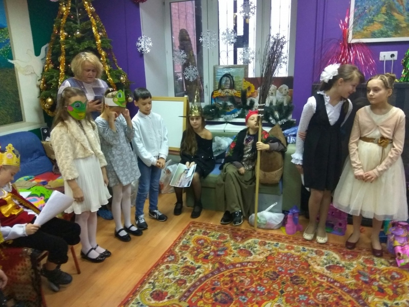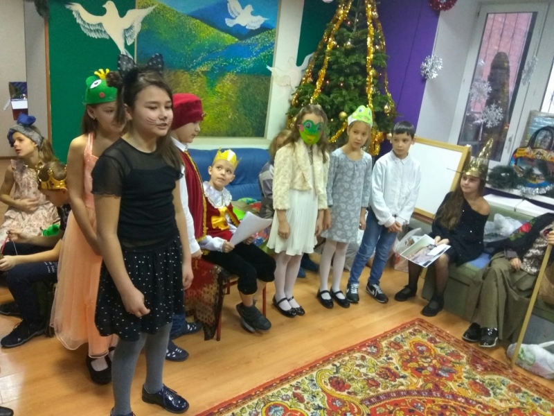 Дети из «Дома Милосердия» благодарят учеников и учителей за то, что приехали в гости и показали сказку про Царевну Лягушку! После представления всем деткам подарили подарки.