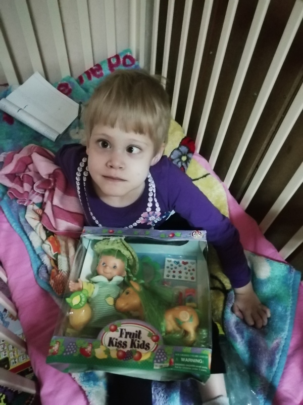 Из московского отделения фонда "Русская Берёза" передали подарок нашей милой Танечке. Она очень хотела куколку с длинными волосами, которой можно делать прически. А в наборе не только куколка, но ещё и лошадка, расческа и заколочки. Спасибо большое доброму человеку, который привез этот набор! Танюшка очень рада!