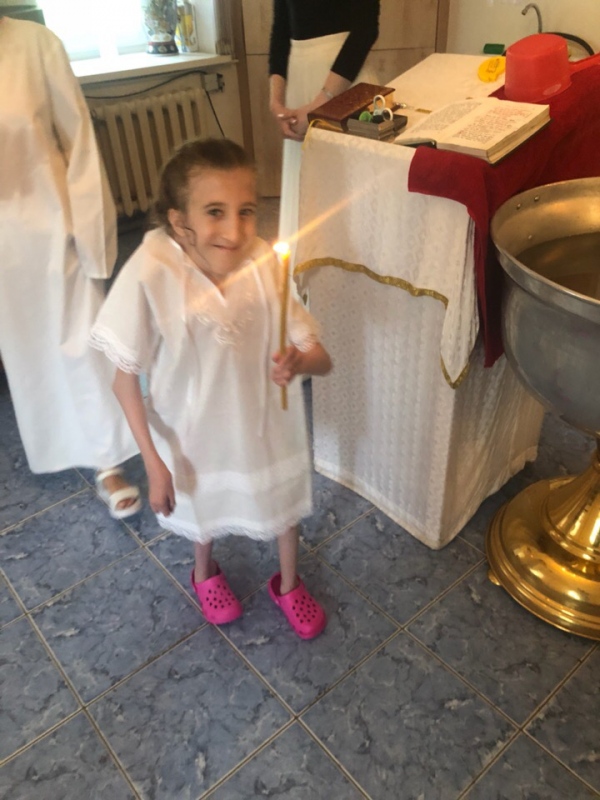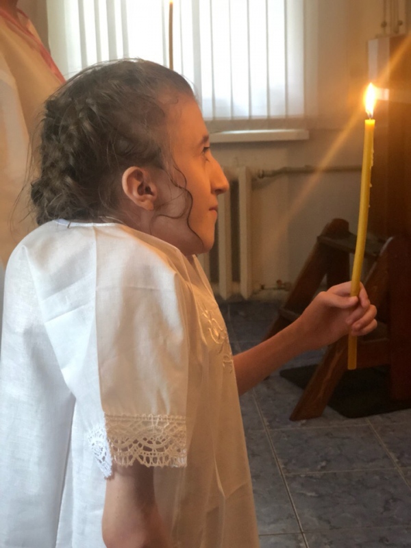 Что важно- девочки сами попросили нас покрестить их. Потому Полине много рассказывал наш мальчик Сашенька, которого мы покрестили этой весной. И Полина сама попросила нас покрестить и ее. А Вика совсем недавно приехала на лечение в Москву, подружилась с Полиной и «захотела, как подружка». Поэтому Полиночка сама рассказала Вике, что означает этот важный день.