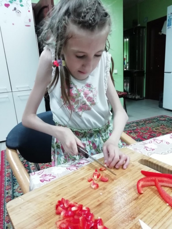 Полиночка - необыкновенный ребенок. Смотрим на нее и удивляемся, как такую девочку до сих пор не взяли в семью. У нянечек все время спрашивает: "Чем помочь? Что сделать?" Такая труженица! Вот сделали фотографии, как она сама яичницу жарит и салатик режет. Родители! Посмотрите, какая девочка! Какая будет дочка! Это же чудо ребёнок! Умненькая, послушная, хозяйственная, воспитанная! Если Вы видите это сообщение, поделитесь им. Сейчас Полиночка находится у нас в Доме Милосердия фонда "Русская Берёза". Привез её на обследование в Москву из под Читы другой фонд. Мы все мечтаем, чтобы у Полиночки появились мама и папа!!!