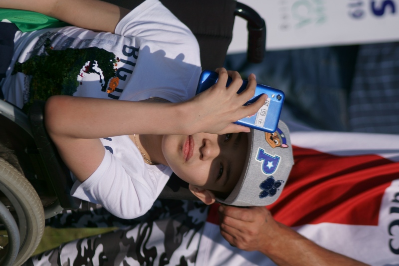 Накануне этого события я навещала детей в Доме Милосердия фонда "Русская Берёза". Мы не виделись почти всё лето, дети щебетали, наперебой рассказывая новости. Вдруг Саша спросил: "А почему так много летают самолеты? Я слышу". "Сашенька, так сейчас у нас в городе проходит МАКС, это авиа - космический салон, самолетов очень много". Саша уныло сказал: "Я бы так хотел хоть раз в жизни увидеть самолеты....". Мальчик, проживший 14 лет в детском доме, на инвалидной коляске, даже и не надеялся на всеобщий праздник. А я, конечно, сразу задумалась. На следующий день у меня был запланирован поход на МАКС с моими детьми. Плюс мы собирались взять собой двух ребят взрослых инвалидов - Сережу Овечкина и Сашу Прохорова. Как всех доствить? Две инвалидные коляски и ещё трое детей + одна их няня. Согласился помочь мой сын Серёжа, взялся отвезти детей на своей машине, в багажник которого умещаются инвалидные коляски. Когда мы сказали детям, что берем их на МАКС, это было счастье!