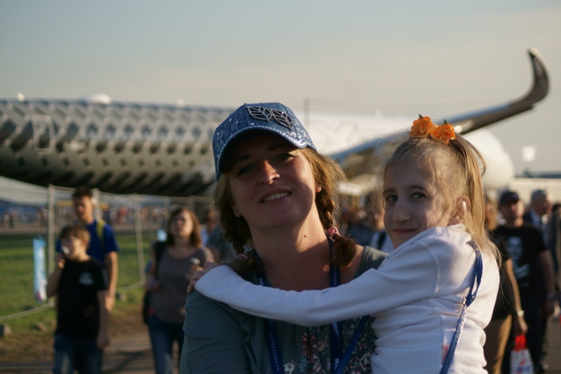 P.S. Похуже фотографии мои, а хорошие моего мужа - Михаила. Дети из Дома Милосердия, которые ходили с нами на МАКС - Саша, Полина и Катя. Спасибо за помощь моему мужу, моему сыну Сергею и его девушке Насте! Ну, и, конечно, Серёжке Овечкину, который помогал возить коляску! Оксана Гарнаева.