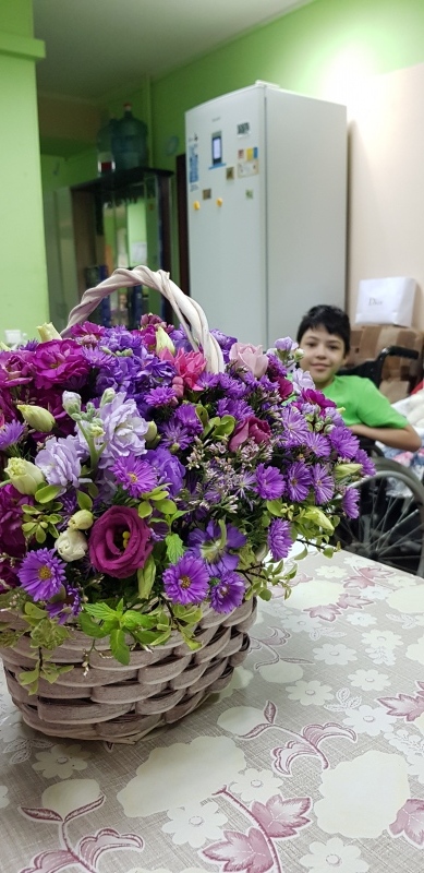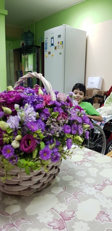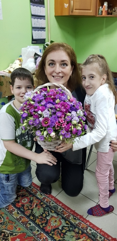 Но это еще не всё. Оказалось, что Любовь Федоровна привезла какое-то неимоверное количество продуктов! Причем, так строго сказала: "Вот это в Дом Милосердия, а это ВАШИМ детям!" Я прям чуть не расплакалась. Большая редкость, что люди вспоминают о том, сколько у меня детей. А кроме продуктов, Любовь Федоровна подарила мне огромную корзину цветов. Я даже сказала, что это прям начало празднования моего дня рождения))))