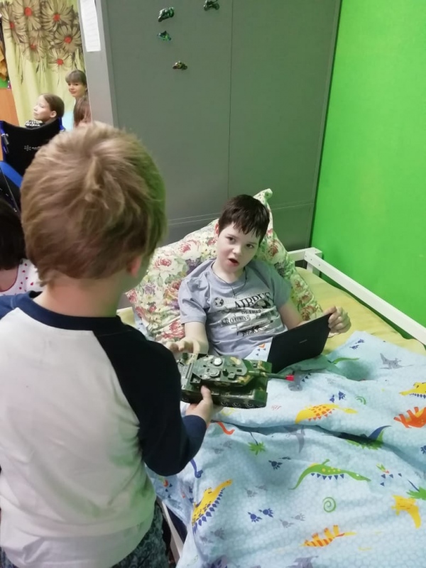 Сёмочка после тяжелой операции. Он все время лежит в кроватке. И очень рад, когда его навещают волонтеры. Наши волонтеры Юлия с сыновьями Аскольдом и Степаном навестили Сёмосчку и подарили ему музыкальный танк. Лежать ему еще долго, развлечений много. А еще наши волонтеры привезли много других игрушек в игровую Дома Милосердия фонда "Русская Берёза". Огромное им спасибо! Мы очень благодарны всем, кто нам помогает. Сейчас одна из главных задач - сохранить Дом Милосердия, во время оплачивая аренду помещения и ЖКХ. Детишек к нам приезжает много, они из разных регионов России, Дом Милосердия с любовью всех принимает и размещает на время лечения. Очередь у нас очень большая, обращений много. Все дети имеют право на счастье!!! И на семью! Вот Сёмочка сирота, ему очень нужна семья. Он перенес столько операций в надежде, что будет ходить и мама его найдет. Где же она....