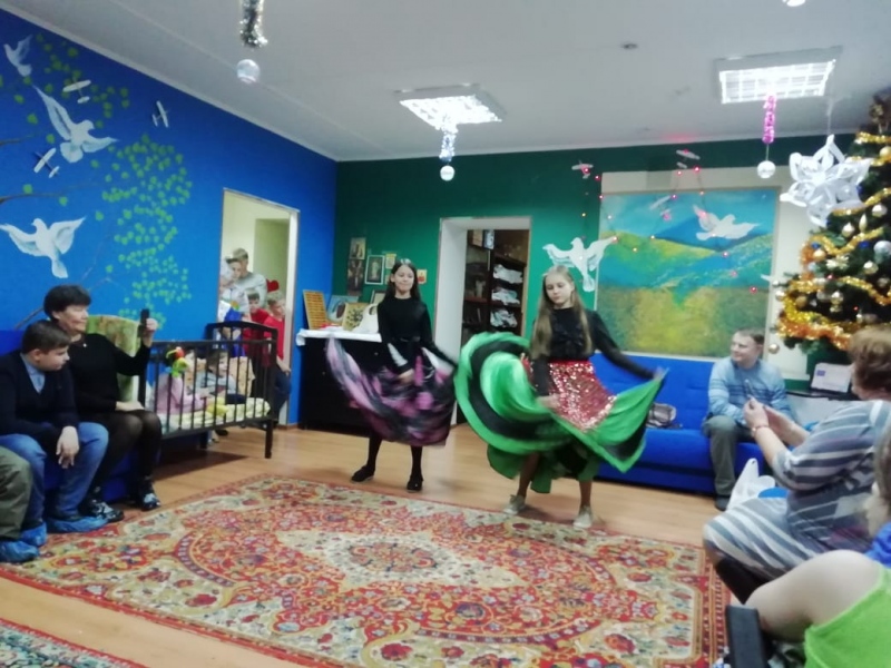 На фото: Наши друзья и волонтеры, которым мы бесконечно благодарны! Волонтеры все ученики школы № 9. Они выступили в Доме Милосердия с веселым новогодним концертом и подарили подарочки детишкам!!!!