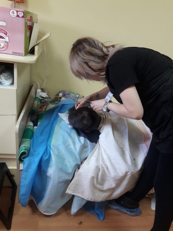 На фото: Ещё до карантина. Наши прекрасные волонтеры, уникальные мастерицы из салона-парикмахерской "ЕВВА" г. Жуковский привли в порядок головушки детишек! Постригли красиво даже лежачего Лёшу. Умнички! Сейчас более остро ощущается то, насколько много люди делают добра для всех ребят, кто находится в Доме Милосердия. Низкий поклон!!!! Верим, что нас не оставят!