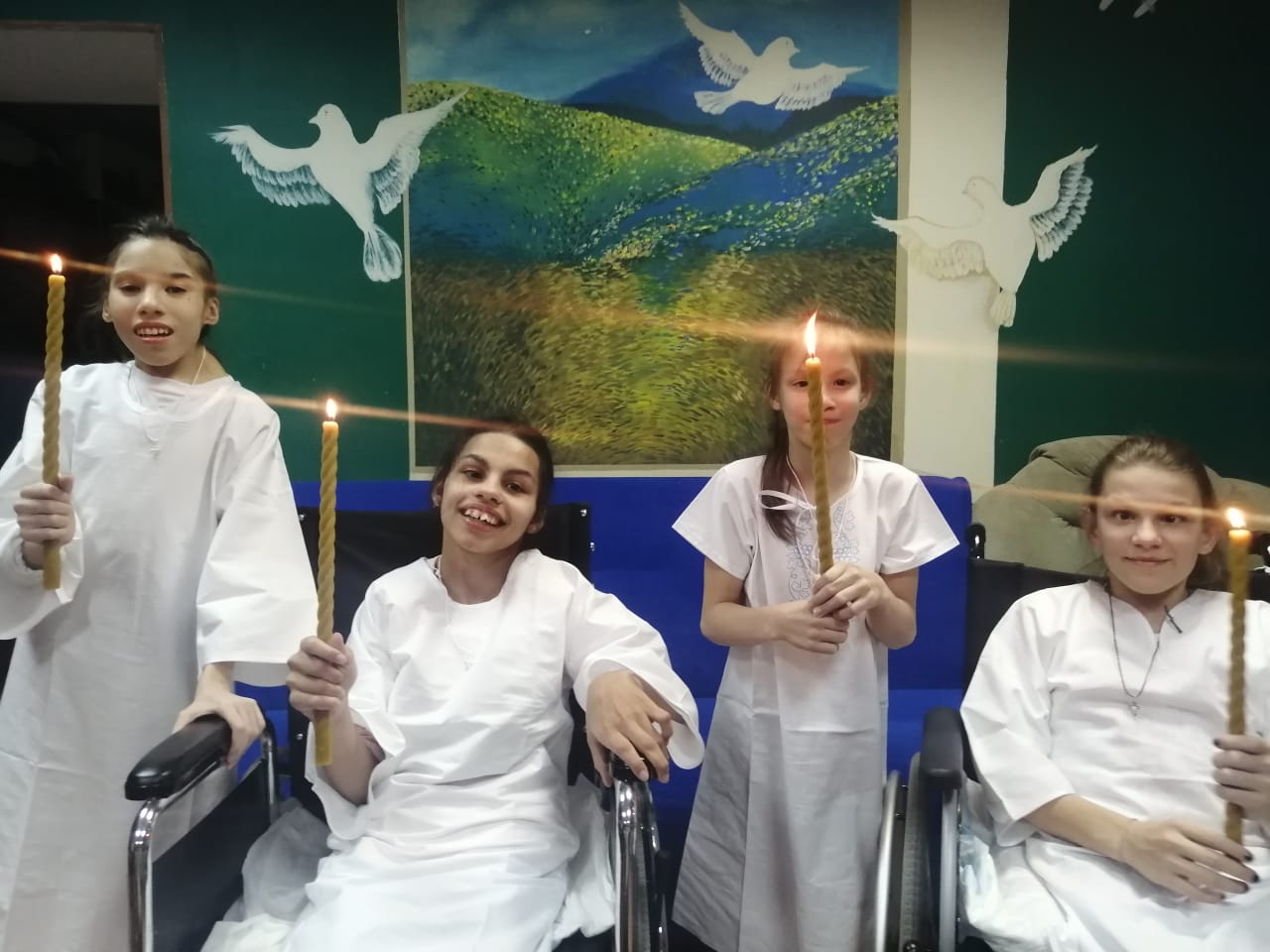 Да, для Кати, Нины, Нади и Насти - Крещение настоящий праздник. Мы обычно всех детишек, которые приезжают из детских домов в наш Дом Милосердия, спрашиваем о том, хотят ли они принять Святое Крещение. И многие дети говорят, что давно об этом мечтали. Крещение проходит прямо у нас в Доме Милосердия, потому что на колясочках детей, которые еще себя неважно чувствуют), везти в храм трудно. К нам приходит замечательный понимающий батюшка отец Димитрий - настоятель храма Архангела Михаила в г. Жуковский. Он умеет нашим ообенным детям всё особенно и объяснить. Таинство Крещения проходит, как будто сюда все ангелы спускаются, так они рады за новых православных христиан. Еще больше они, конечно, будут рады, если взрослые дяди и тёти услышат ангелов и найдут своих дочек среди наших новокрещенных. Трудно воспитывать детей инвалидов, но, поверьте, ангелы помогают! Доверьтесь им! И поддержите девочек миллионами лайков и репостов!