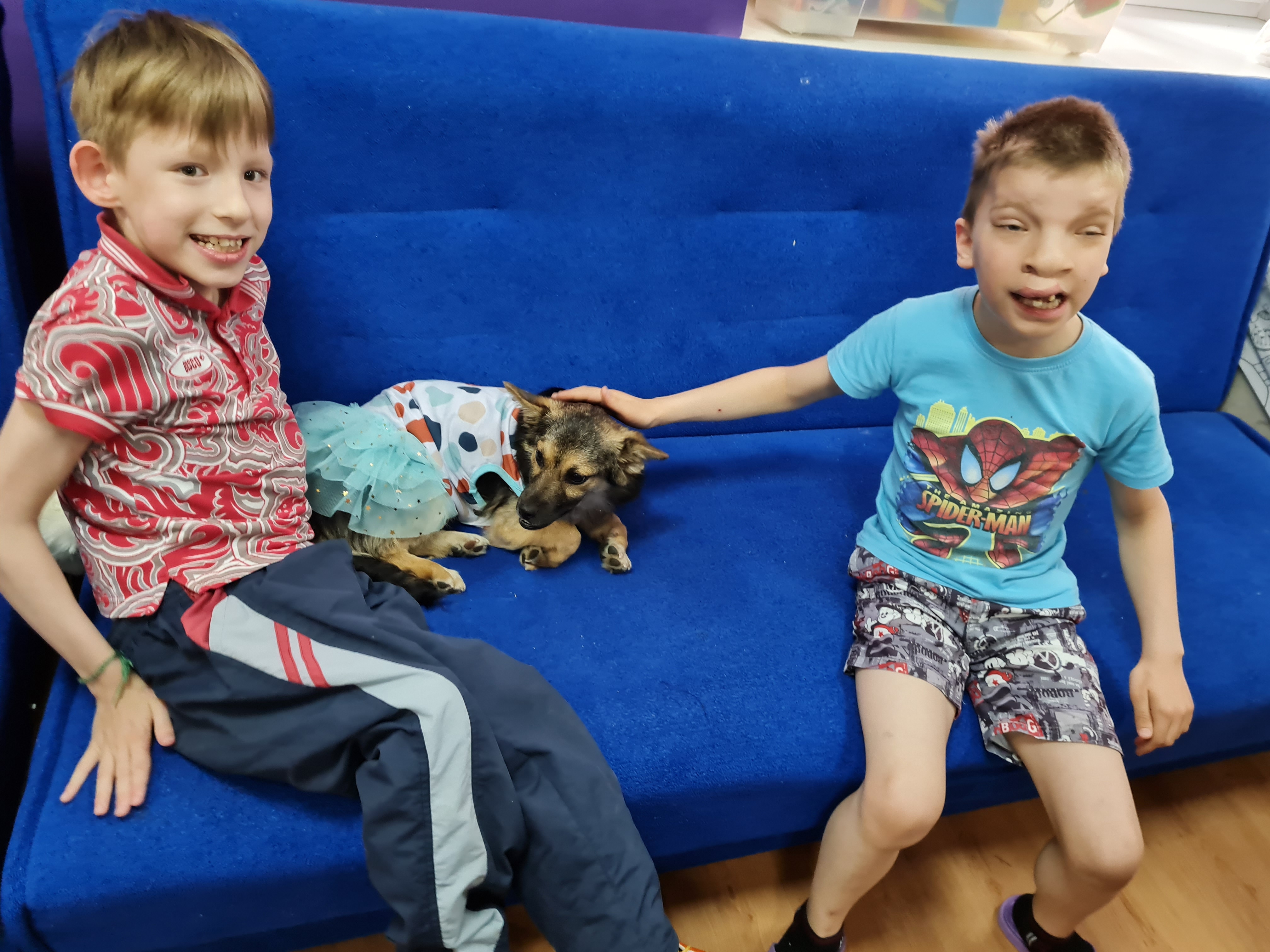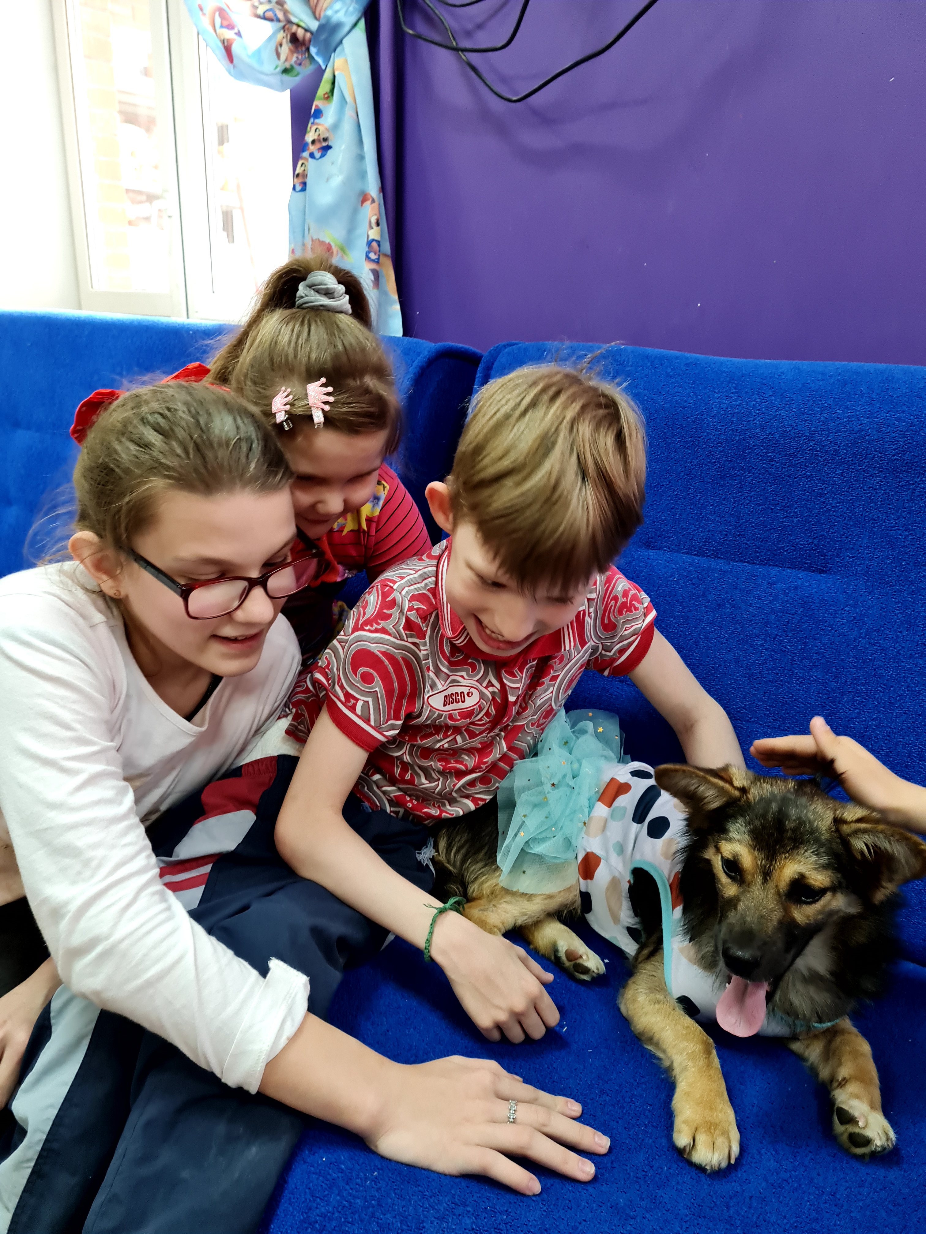 В Доме Милосердия ликование и праздник. Шаня - собачка, которая сама недавно была в приюте, сегодня принесла детям море радости и счастья. Наверное, даже не нужно писать много слов. Достаточно взглянуть на эти фотографии. Собака - мечта многих детей. Но в детском доме эту мечту нельзя осуществить. Поэтому Шаня запускает свой марафон в помощь детям - сиротам. И говорит всем людям, что каждому ребёнку нужна семья!