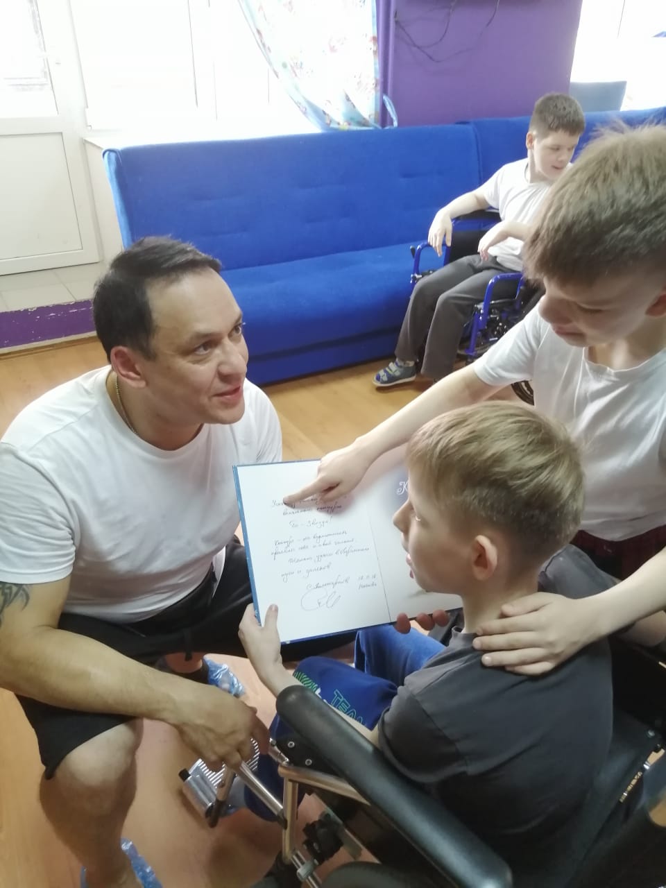 Гуля! Гуля! Гуля! Наша дорогая и любимая Гуля! Сколько добрых дел ты сделала для нашего Дома Миилосердия! Скольких людей привела, рассказывая о наших нуждах и проблемах! И вот новый гость - Вячеслав Зинуров (он же Том-Хаос Младший. группа "Отпетые Мошенники"). Дети, которым практически недоступен современный мир из-за их особенностей, увидели настоящего популярного артиста!!! Вячеслав супер! Он не только профессиональный артист, но и очень добрый человек. Он нашел подход к каждому ребёнку! Всех развеселил и спел со всеми песни! Гуля и Вячеслав -люди, которые по-настоящему переживают за детей-сирот и желают им только одного - найти семью! Может, на примере Вячеслава и Гули откликнутся разные добрые люди и спасут наш Дом Милосердия, которому совсем нечем платить за аренду. Добрых людей много!