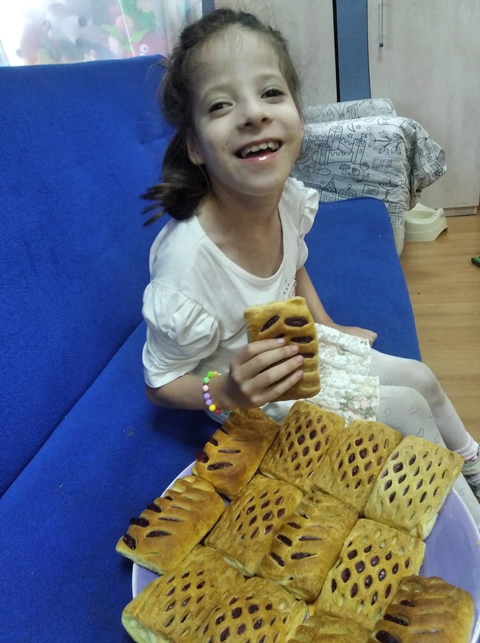 Случайно из газеты узнала о существовании Дома Милосердия. Живу в Москве. В выходные решиа съездить и посмотреть, что это за Дом Милосердия. Время ко мне безжалостно, наверное, потому что у меня чуть не остановилось сердце, когда с порога увидела мальчишку в инвалидной коляске с подносом пирогов, он закричал мне: "О! Привет! Иди сюда!" Я подошла и он, как ни в чем не бывало, начал угощать меня пирогами. Я с трудом ела вкусный пирожок, слезы душили, а мальчик лопотал что-то. К нам подъехали на колясках другие дети и все что-то говорили и угощали меня пирожками))) Позже их няня мне сказала, что дети очень любят пирожки и часто компания "ХОУМ ФУД" балует ребят.