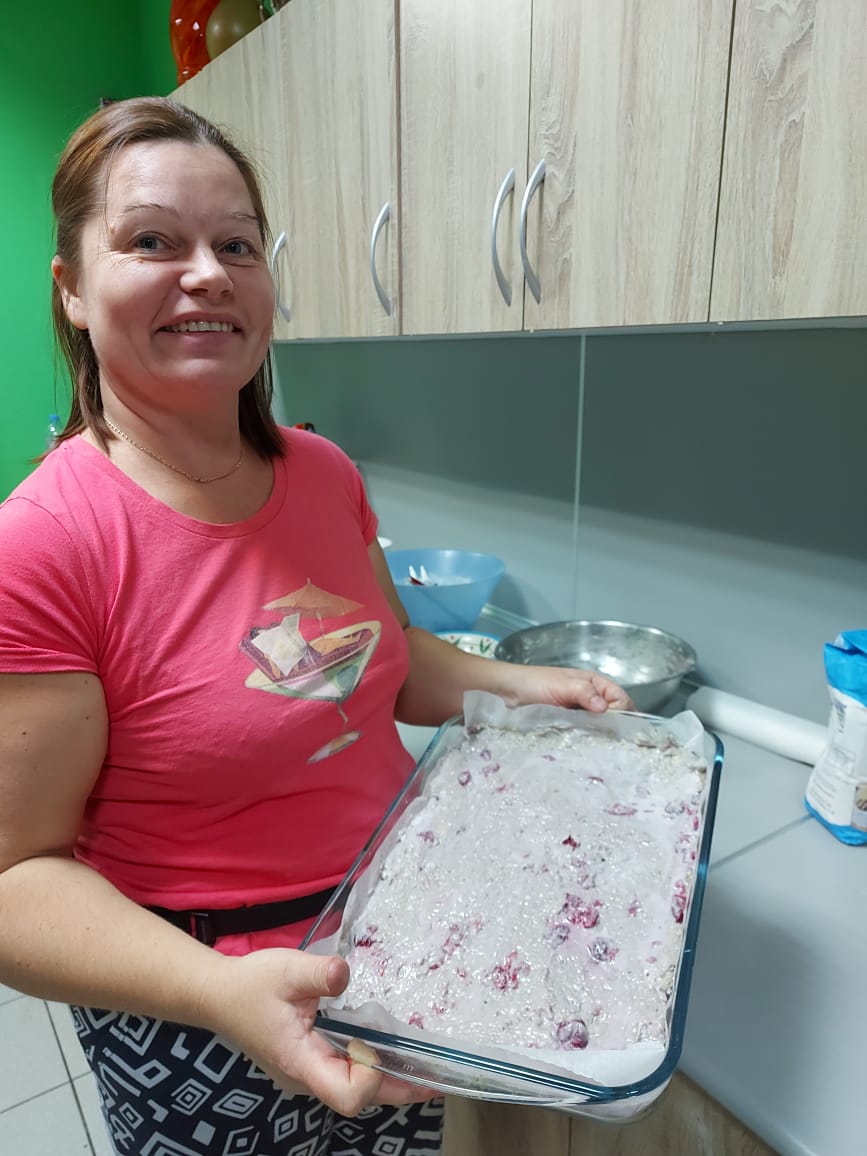 На фото наша подопечная Анна, которая приехала с дочкой Витой. Испекла Дому Милосердия свой фирменный пирог!