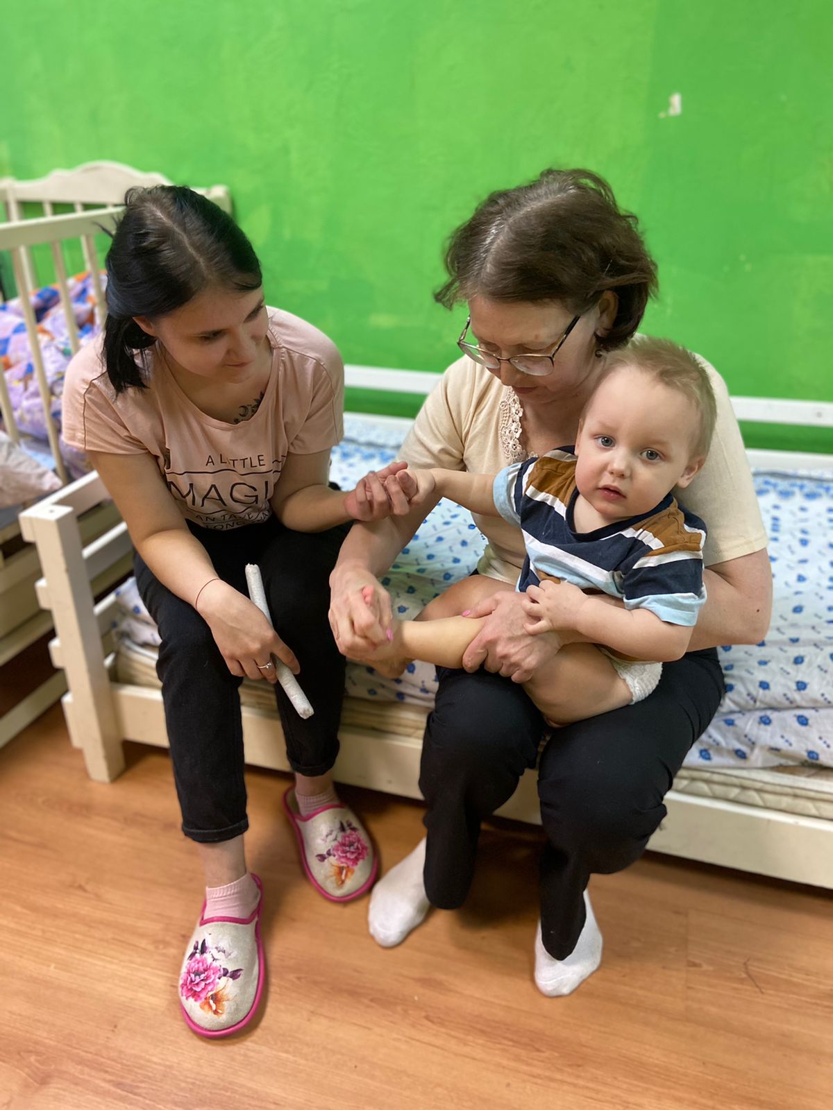 К Захарчичку, например, приходил массажист. Чудесная Лилечка. Сама она давняя подопечная нашего фонда, воспитывает ребёнка с ОВЗ. Решила помочь Захарчику, чтоб он хорошо ходил. Спасибо огромное Лилечке!