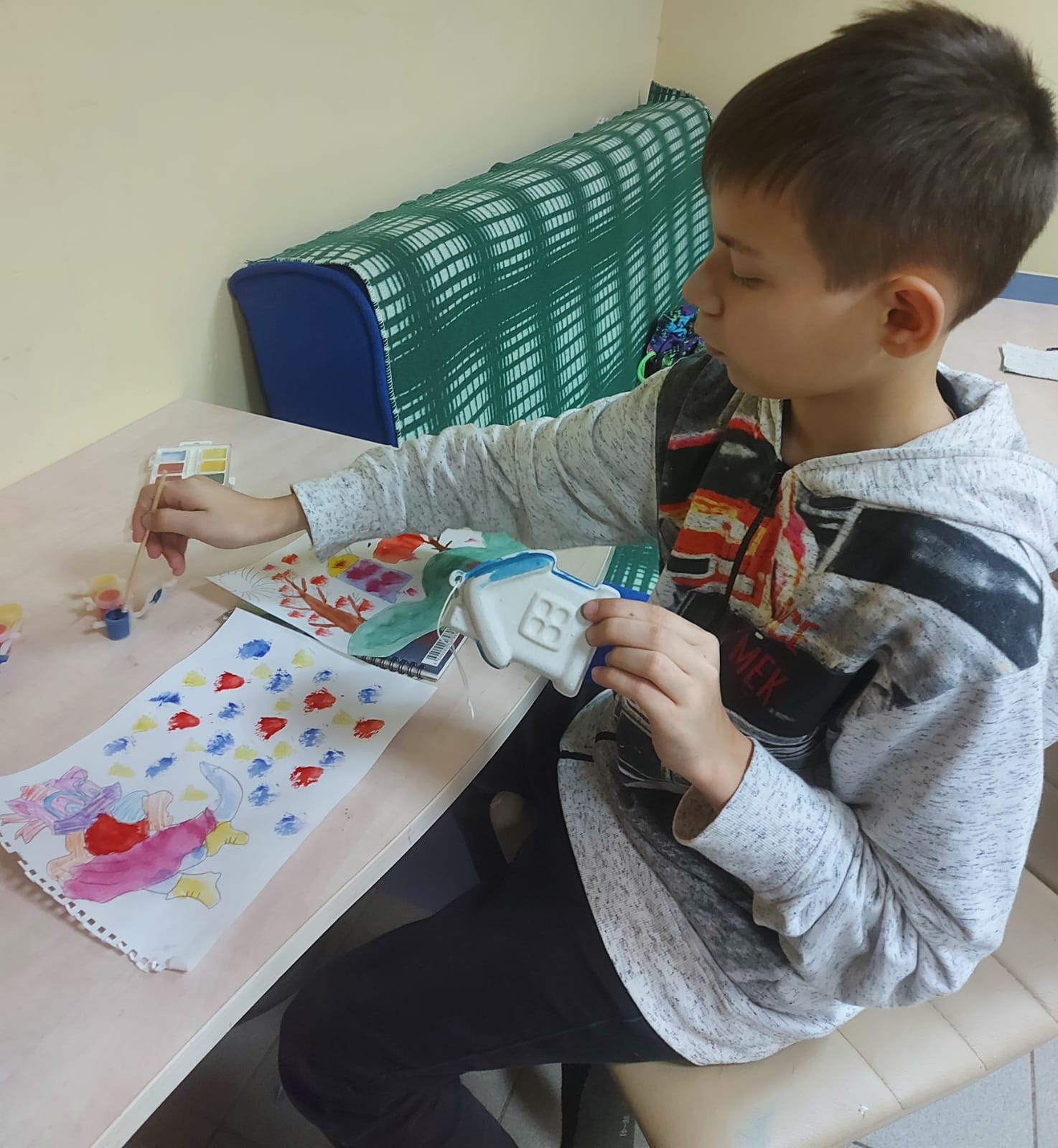 Никитушка очень чуткий и внимательный мальчик. Увидел, что благотворительная трапезная в Доме Милосердия украшена дескими рисунками. Спросил у няни и о трапезной, и что это за рисунки. И захотел тоже нарисовать свой, чтобы повесить в трапезной. Вот мальчик пример многим взрослым. Сам пережил неприятные моменты в своей жизни, а сердечко такое милосердное!
