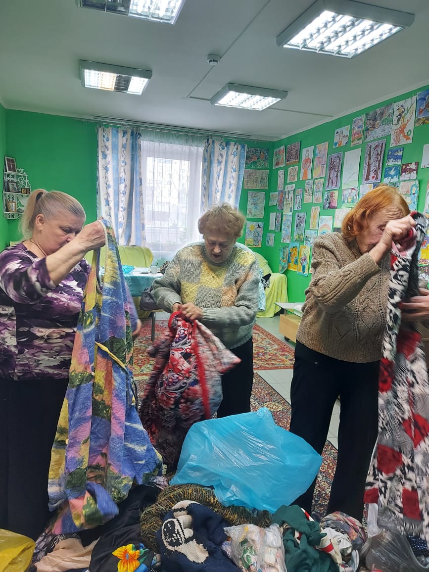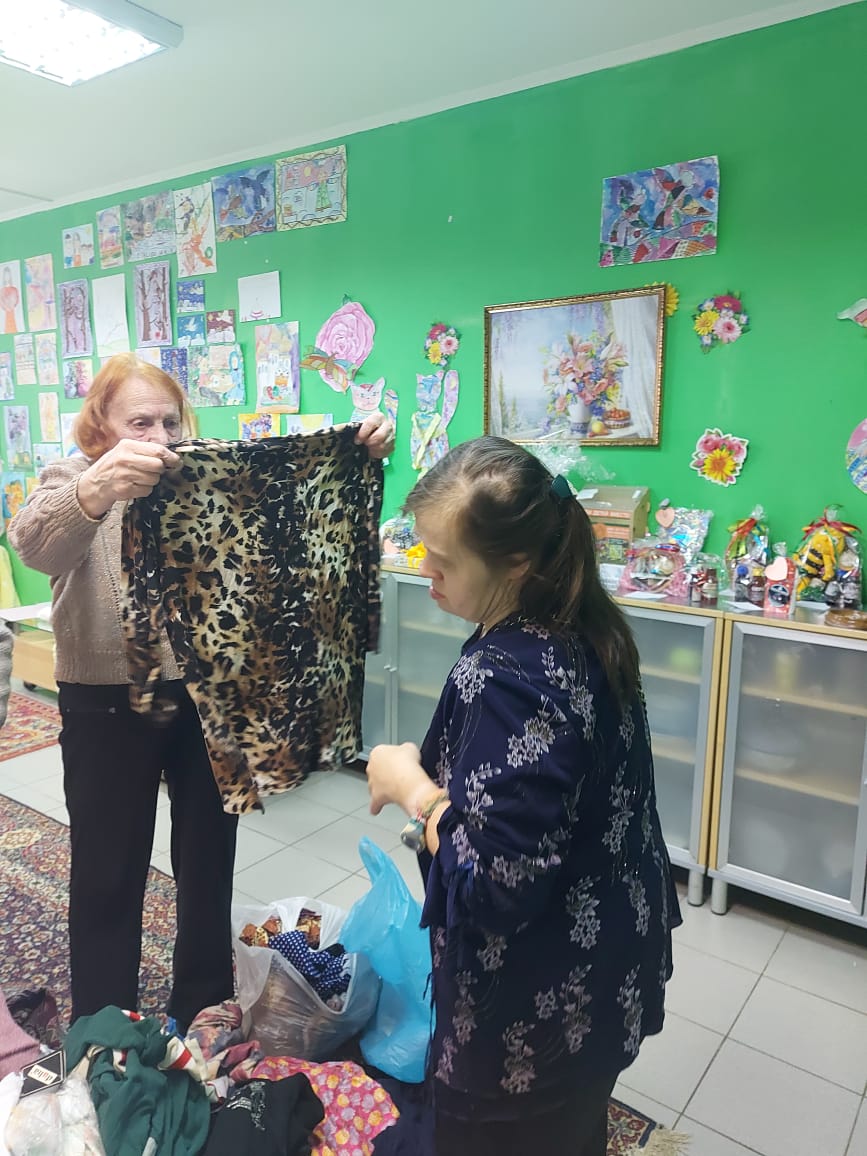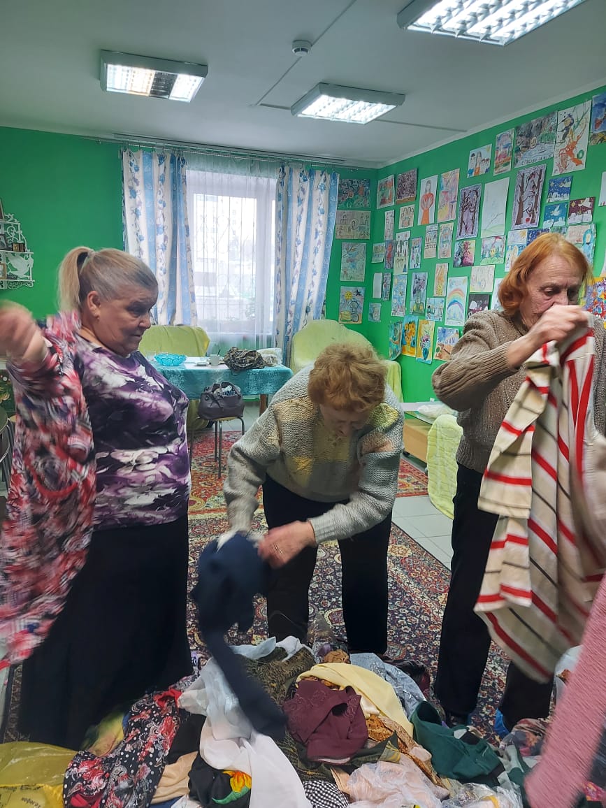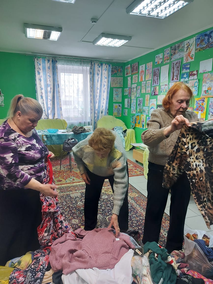 Что может больше всего порадовать женщину? Конечно, возможность приобрести прекрасные вещички. Шопинг для наших трапезниц не очень доступен - люди, так сказать, позволить немогут модные покупки. И как это мы здорово придумали - принимать иногда вещи в Доме Милосердия. А уж как счастливы трапезницы! Это было невиданное счастливое пати по разбору и набору одежды! Нужно было на подиум всех! Как-то мы сразу и не сообразили! Но в следующий раз устроим. Такое счастье нужно видеть! Спасибо нашему инкогнито благодетелю!!!