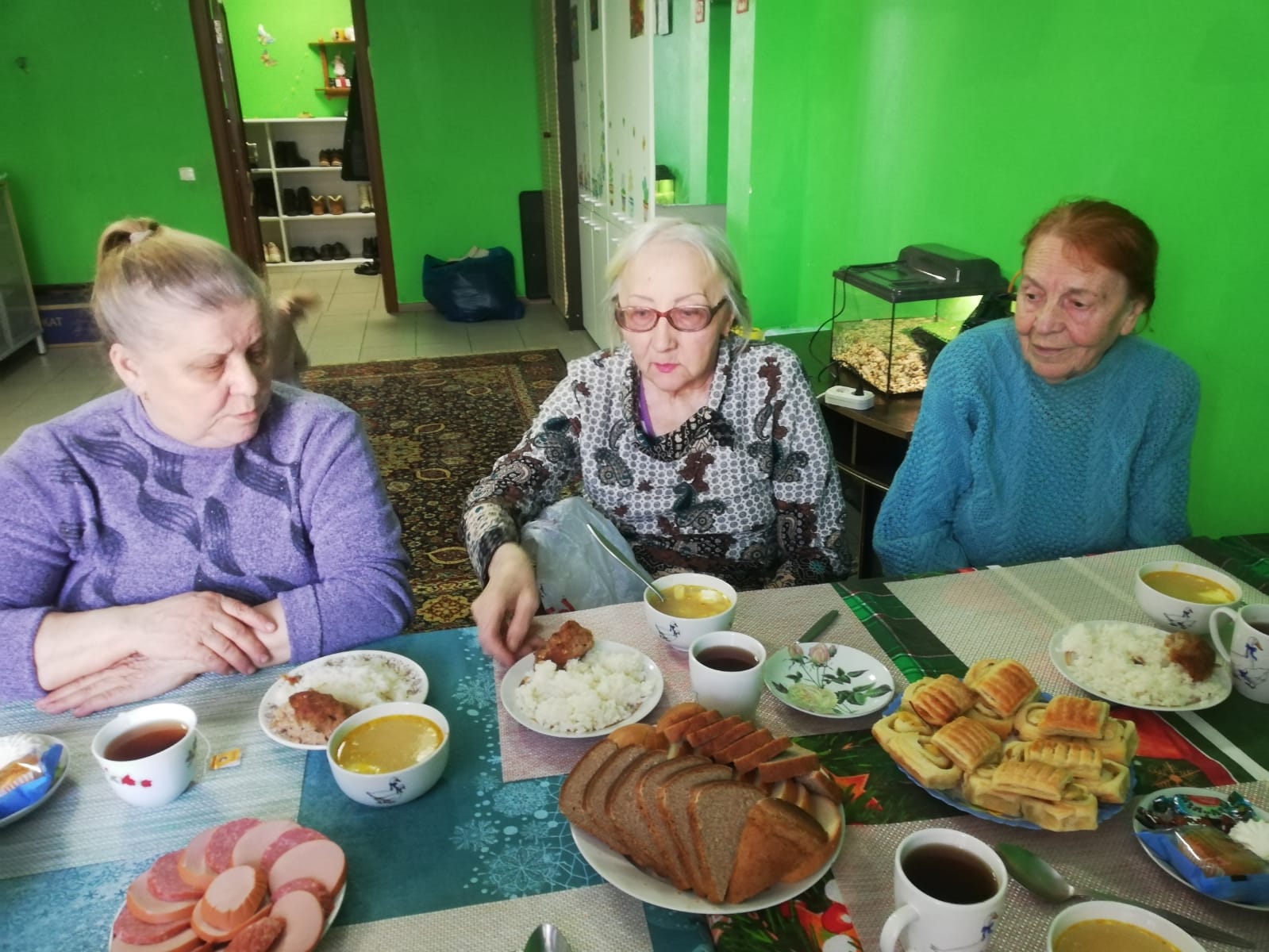 побыть в компании хороших добрых друзей. Для наших красотулей встречи по воскресеньям в трапезной Дома Милосердия не просто еда. Здесь и беседы, и воспоминания, и высказывание проблем. Как их много! Плохая погода, пенсия, одиночество, лекарства, поликлиника, что где купили подешевле... К сожалению, дома такой тёплой компании они позволить себе не могут. Делали бы мы встречи чаще, но сейчас это очень тяжело. В Москве при благотворительной галерее делает большие успехи, потому что московская интеллигенция, которая к нам приходит на трапезы, состоит из разных сословий. Это и благотворители и подопечные. Одним словом - просто гости)))) Придут, сами, болтая обо всем, нарежут салатики, чаёк заварят. А жуковские такие какие-то более беззащитные. Здесь только подопечные... Так что эти обеды, встречи, трапезы зависят только от нас, наши дорогие! Принимаем помощь!