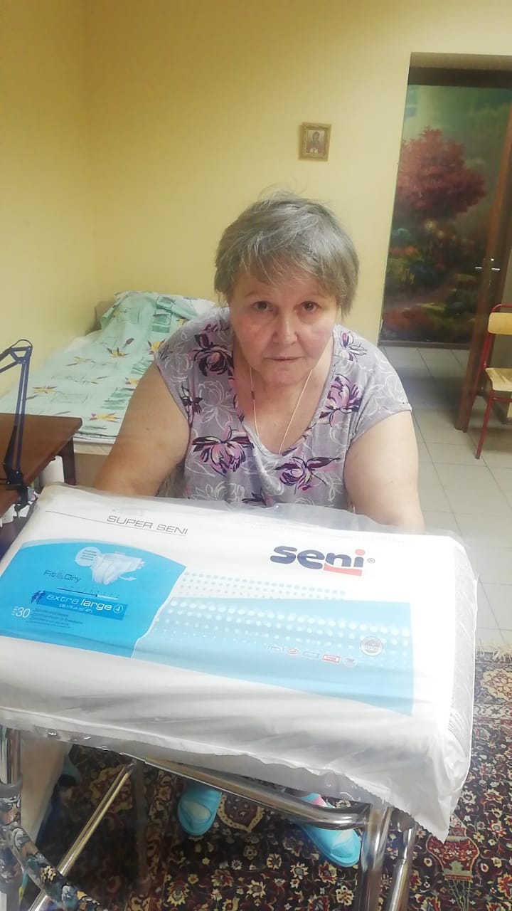 передали памперсы. Ох, как они нужны Галинушке. Огромное спасибо передает благодетелю Ольге. Милейшая! Купила памперсы. Сейчас для нас всё дорого. А человеку нужен уход. Хороший, чтоб комфортно было. Мы бы ещё очень хотели попробовать памперсы - трусики. Они должны быть Галинушке удобны, так как она расхаживается. Возможно, в трусиках будет легче. Если кто может пожертвовать трусики или денежку, будем благодарны!