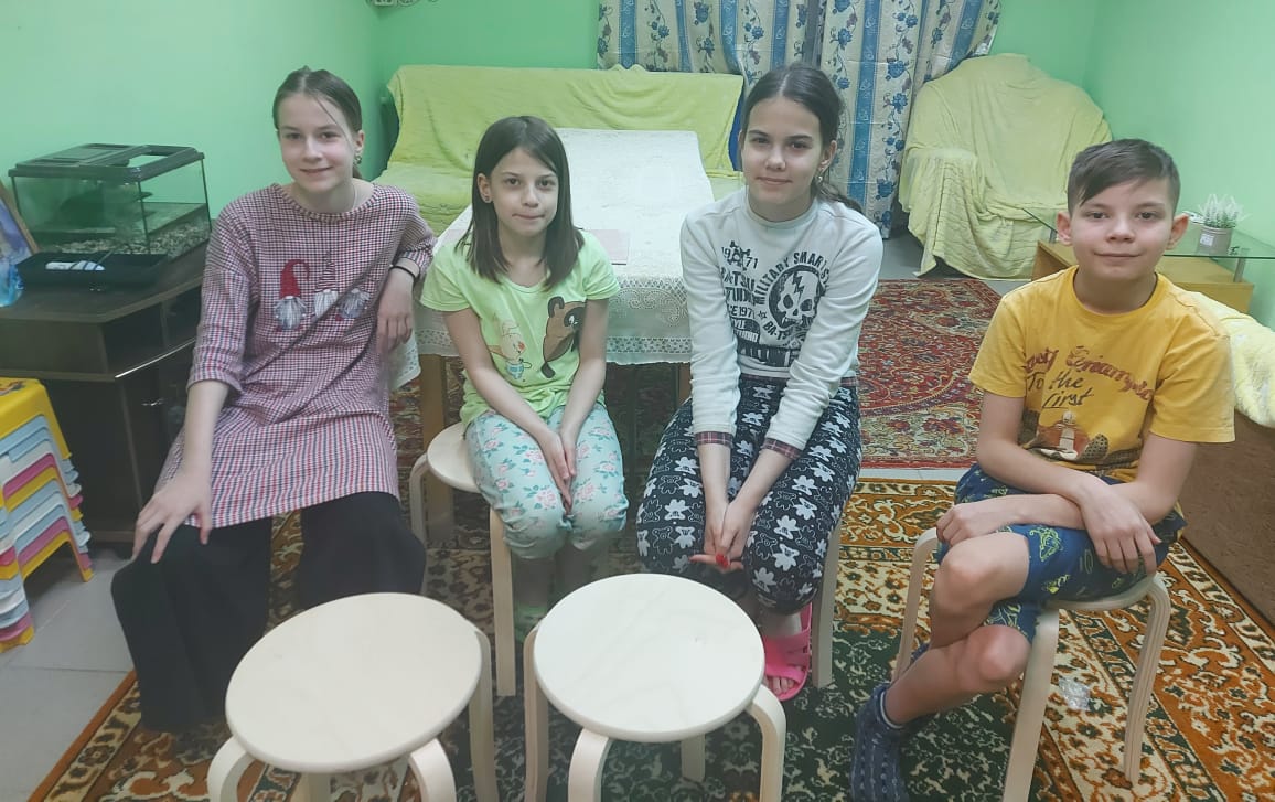 И мальчики, и девочки, и бабушки и дедушки сидят теперь на новеньких табуреточках! Это волшебница Елена купила в Дом Милосердия. Уж какая проблема была стулья-табуретки. Готовы были принимать и б/у, лишь бы в хорошем состоянии, наши-то совсем развалились. И тут вдруг то стулья, то потом табуретки! Это ж целое богатство! От всего сердца огромное спасибо Елене!