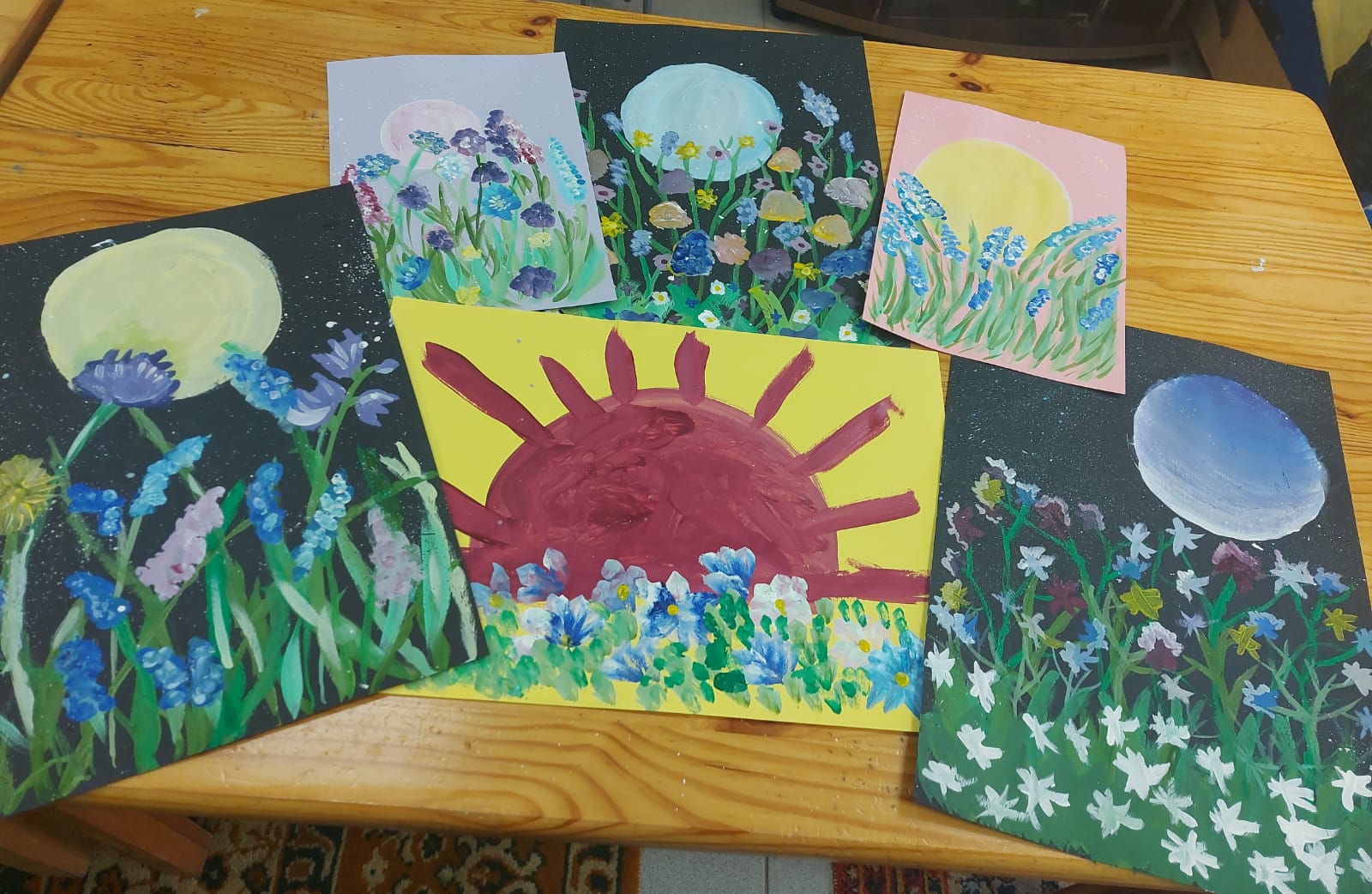 Видео было, а фото нет. Исправляемся! Какой же происходил в Доме Милосердия шикарный мастер класс! Глядя на эти шедевры, даже не верится, что писали картины совсем не Левитаны! Всё потому что мастер - волшебница. Зовут её Мария. Нет ничего уютнее, душевнее, спокойнее, чем быть дома. Такие волшебницы, как Мария и делают наш Дом Милосердия настоящим домом для всех наших ребятишек! Спасибо, милая Мария!