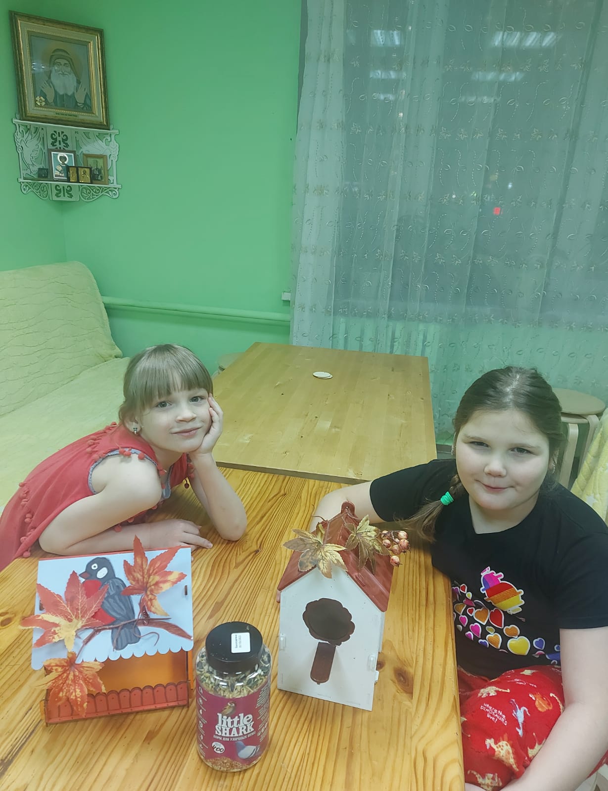 Вот так наши девочки из Дома милосердия Василиса и Катя выполняли домашнее задание – делали кормушки для птиц. Теперь дети знают, что такие простые, но экологические кормушки помогут нашим пернатым друзьям во время наступления холодов. Надо ли говорить, что такие кормушки, изготовленные своими руками, доставили детям огромное удовольствие.