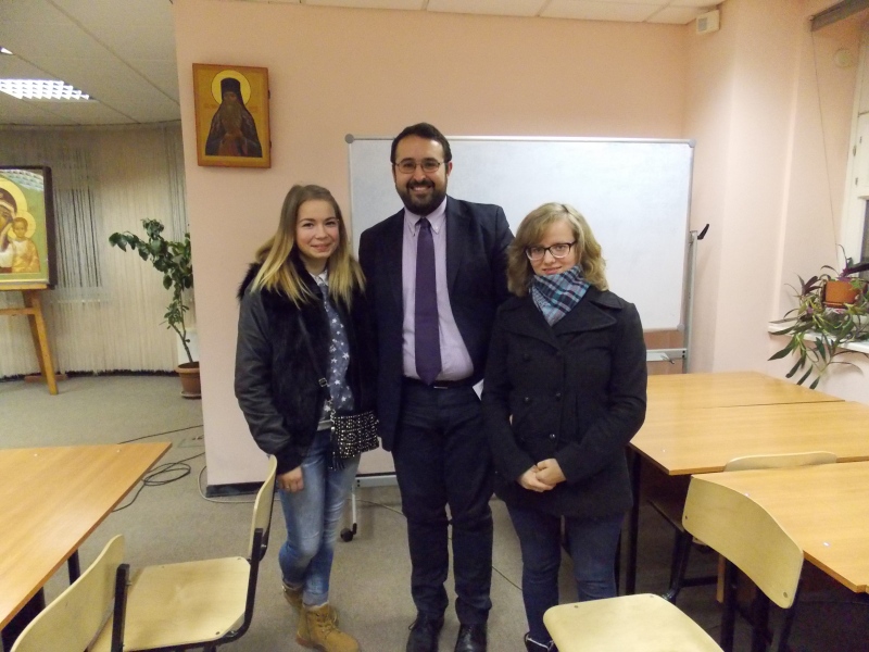 На фото Алёна и Марина с Алессандро Салаконе - представителем общества Святого Эгидия в России.