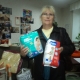 две посылки: средства гигиены, канцелярские принадлежности, набор заколок 4,скатерть, набор для вышивания 2, фоторамки 2,игры 3, продукты, одежда, обувь.