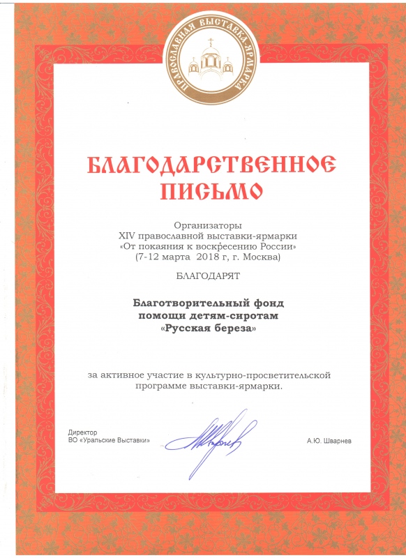 РУССКАЯ БЕРЁЗА. Благотворительный фонд помощи детям-сиротам и многодетным семьям имени заслуженного лётчика-испытателя СССР,