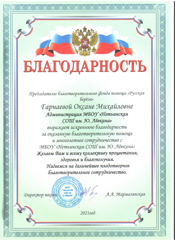 РУССКАЯ БЕРЁЗА. Благотворительный фонд помощи детям-сиротам и многодетным семьям имени заслуженного лётчика-испытателя СССР,
