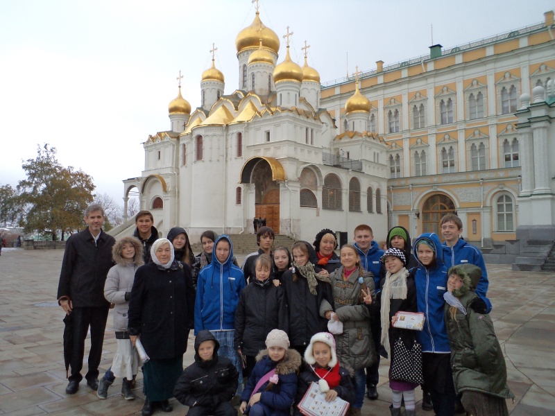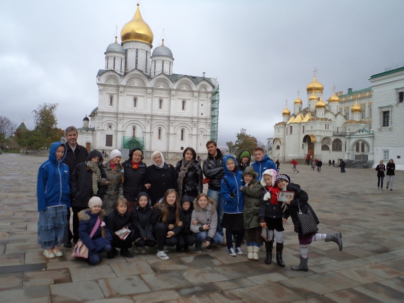 И в память о моем украинском дедушке и с надеждой на воссоединение русского и укранского народа в одно Государство, мы приняли решение организовать детям сиротам из Ужгорода поездку в Россию, тем более, что, к сожалению,  им отказали все благотворительные организации Москвы, к которым фонд "Новая Семья" обращался за помощью. Кризис, денег нет, а мероприятие должно было нам обойтись в почти 400 тысяч русских рублей. Собирать денежки на поездку мы начали с июня, а закончили за 2 дня перед приездом детей. Мы до последнего сомневались, что сможем оплатить стоимость проживания и паломнических поездок. Усиленно молились и мы и дети с Украины. И Господь услышал наши молитвы. Приезд 18-ти детей и четырех сопровождающих  состоялся! Низкий поклон всем добрым людям, которые помогли нам принять деток в Москве!  Паломнический центр при Московском Патриархате организовал замечательную встречу деткам, проживание в гостинице "Университетская" и хорошее питание. Наши детки приехали 22 октября. В первый же день они посетили Красную Площадь, Казанский и Иверский соборы, Кремль, Александровский сад, могилу Неизвестного Солдата, храм Христа Спасителя и даже цирк на проспекте Вернадского!