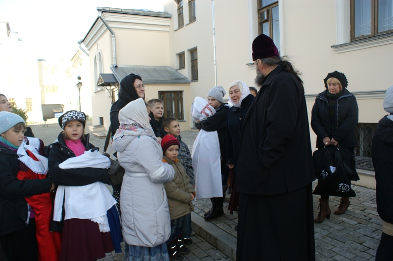 27 октября я собрала своих детей и мы поехали попрощаться с детьми-сиротами в Марфо Мариинскую обитель. Там мы приобрели для деток иконочки святой преподобномученицы Елизаветы Федоровны, которая всегда заботилась о сиротах, приложили иконочки к мощам Великой Княгини. А потом дети выступили перед нами и другими сиротами из Марфо-Мариинской обители с замечательным концертом. Эти дети настоящие таланты, они так пели и танцевали!!!!!! Просто чудо! Песни брали за душу. Кстати, ко всем песням музыку написал батюшка отец Димитрий, который приехал в сопровождении с детьми. Маленький мальчик Коля спед песню, посвященную моему дедушке, называется она "Я ангелом летал". Расставаться нам было очень тяжело. Дети просили, чтоб мы непременно приезжали к ним в Закарпатье. Мы проводили детей до автобуса и потом еще долго махали друг другу, пока автобу не скрылся из вида.... Бог даст, еще свидимся! А, когда подрастут наши детки, то станут умнее нас и сотрут эти никому ненужные границы между родными людьми.