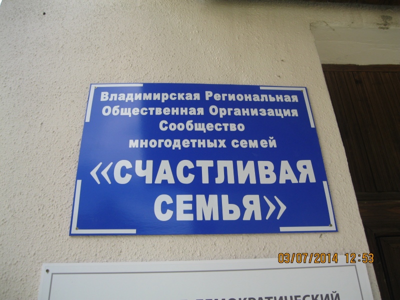 В фонд «Русская Берёза» поступило прошение от Владимирской Региональной общественное организации сообщества Многодетных семей "Счастливая семья" (Владимирская область, г.Судогда):