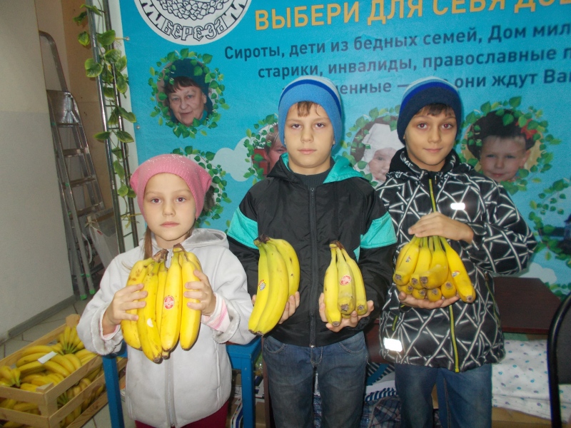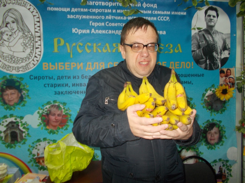 Благотворительный фонд «Русская Берёза» выражает огромную благодарность за помощь в виде 11 ящиков бананов для подопечных фонда! Огромное спасибо нашим благотворителям в лице режиссёра Олега Трофима снимавшего полнометражный фильм «Лёд», а так же его помощника Петра, всю съёмочную группу и замечательную, талантливую актрису Аглаю Тарасову. Несмотря на свой тяжёлый график работы ребята пообщались с сотрудниками фонда и для подопечных детишек передали вкусные бананы. В фонде постоянный дефицит продуктов, так как это первая необходимость любой категории подопечных.