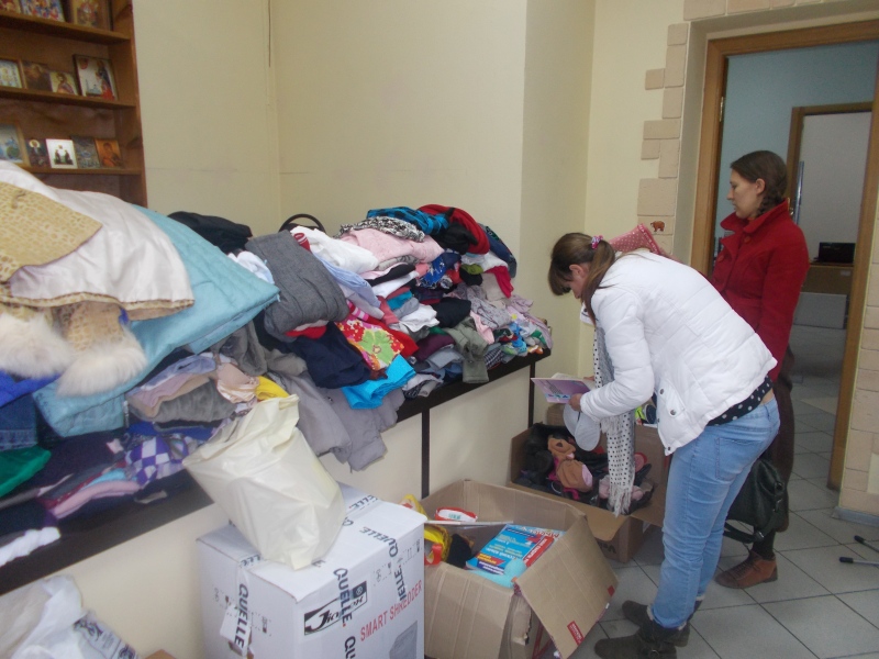 В который раз они проводят сбор вещей для  многодетных мам и для всех, кто состоит у нас на учете и нуждается в вещах. Стараются благодетели  одеть и мамочек, и детишек. Отдают книги, посуду, сумочки, игрушки, и многое необходимое для жизни. В те дни, когда привозит компания гуманитарную помощь — у нас в отделе помощи настоящий праздник. Очень много народа: бегают ребятишки и радуются новым игрушкам, девчата примеряют вещи, мамы счастливы за своих детей. Кругом полные сумки, у всех приподнятое настроение, царит атмосфера жизнерадостности и веселья.