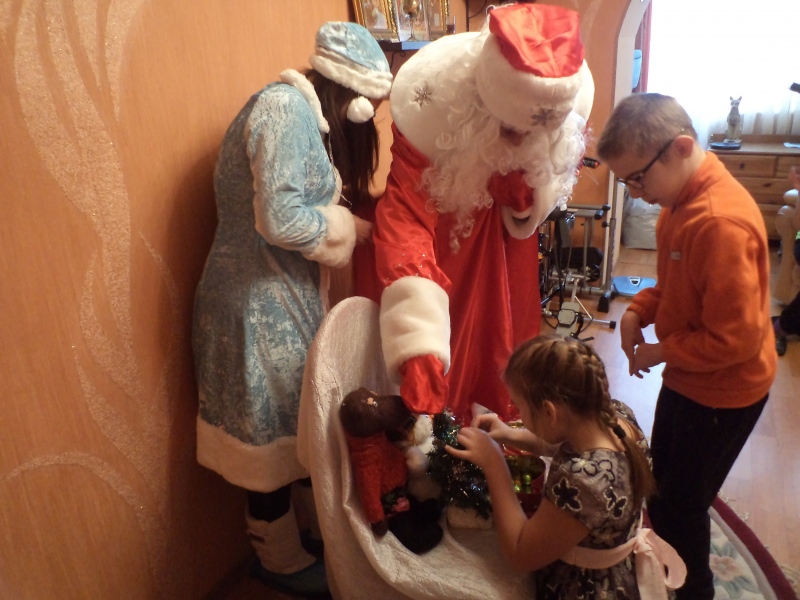 Новый год!!! Елка, шарики, фонарики, игрушки, гирлянды, мишура, серебристый дождик и, конечно, чудеса!!! Всем деткам хочется встретить Дедушку Мороза. К деткам из двух подопечных семей фонда «Русская Берёза» приходили настоящие Дед Мороз и Снегурочка! Разве могли себе позволить вызвать платно Деда Мороза и Снегурочку вдова Ирина Усатова с тремя детками и Калиш Варвара с двумя детками, один из которых инвалид ДЦП. (Семьи г. Раменское)? Наши благотворители помогли мамам и устроили праздник!!!!