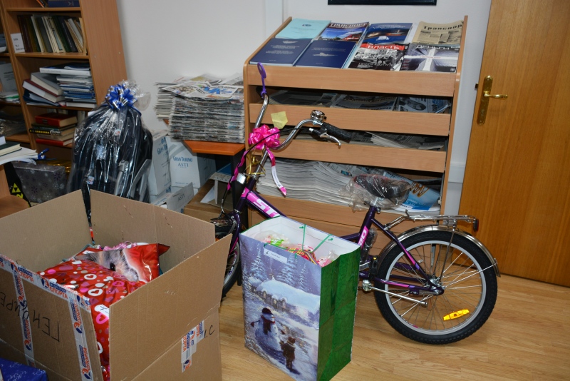 Но и это ещё не всё. В конце праздника детишек ожидал большой сюрприз: Дедушка Мороз исполнил их самые заветные желания, о которых они написали ему в своих письмах! Это была настоящая сказка, ЧУДО, которое вы подарили нашим детям! Хотела вставить несколько фото с нашими подарками, но получилось только одно. А подарки действительно чудесные, остаётся только дивиться щедрости благодетелей фонда. Старшего Стаса было не слышно и не видно часа три - он собирал свой долгожданный подарок - дракона из набора Лего. Дашеньке подарили настоящий новенький велосипед, которого хватит покататься не только ей, но и младшим братишкам (а их у неё трое)). Мальчишки (Ярослав и Светослав) были просто счастливы, когда мы распаковали и собрали их снегокаты. Сначала катались прямо дома (и прыгали, и тянули друг друга, пока папа не запретил царапать пол), а на следующий день всей гурьбой катались во дворе. Не остался без подарка и младшенький Серёжа (ему всего 2 мес.), да ещё какого подарка - новенькой итальянской прогулочной коляски фирмы Peg-Perego! Честно говоря, когда писали письмо, ожидали чего-нибудь попроще и подешевле. А тут ТАКОЙ подарок!!! Благодарим вас от всей души! Дай вам Бог здоровья, душевной радости, счастья в ваших семьях, удачи во всех делах! Спасибо ещё раз за ЧУДО, которое вы дарите детям!