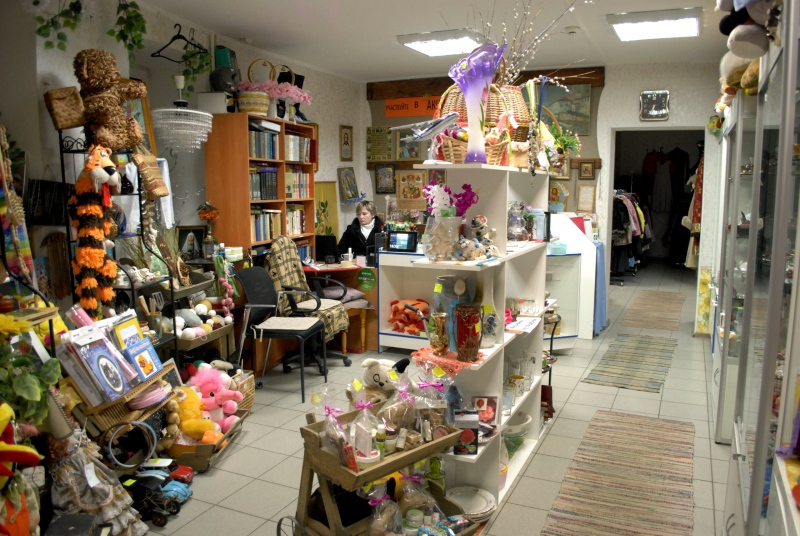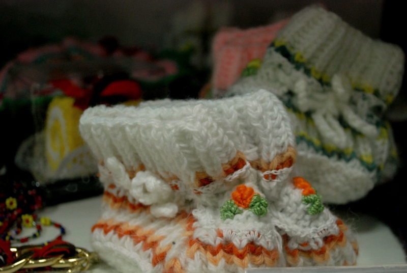 И это отдел рукоделия! Один из моих любимых отделов, но простите за отступление, я продолжу. Здесь вас ждут: вышивка крестом и бисером, пряжа и аксессуары для вязания, шитье игрушек, материал для пэчворка. Главное фантазия! А тут есть где ей развернуться. Тут же находятся и уже готовые изделия мастериц. Вязаные пинеточки и носочки, шали, кофты и т.д.